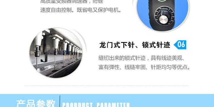 產(chǎn)品簡介:單梁大棚棉被機(jī)(全自動旋梭型引被機(jī)):新一代(單梁大棚棉被機(jī),單梁大棚保溫被機(jī))全自動引被機(jī),不留被頭,一人操縱,簡單快捷。我公司開發(fā)研制的新一代旋梭型仿手工引被機(jī)(單梁大棚棉被機(jī),單梁大棚保溫被機(jī)),采用超大旋梭,一次可絎縫200條被子,減少換底線的次數(shù),樞紐部門精心設(shè)計,兩分鐘可引一床被,線條美觀,針距均勻,大小可調(diào)。此棉被機(jī)(單梁大棚棉被機(jī),單梁大棚保溫被機(jī)) 設(shè)計科學(xué)合理,安全可靠,整體美觀大方價格低廉,回本快,是被子加工用戶家庭致富的理想產(chǎn)品。