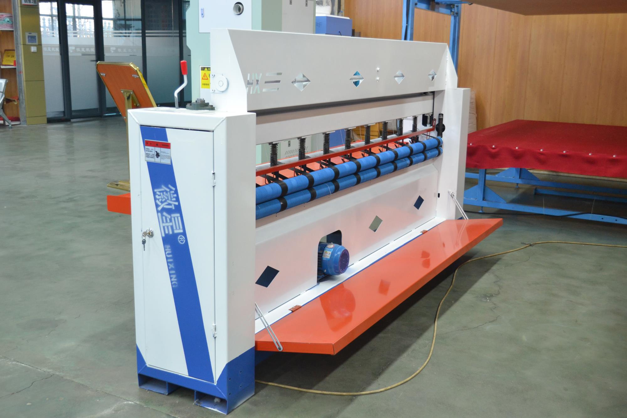 本設(shè)備是生產(chǎn)家庭用棉被、絲棉被、棉門(mén)簾、大棚保溫被、 車(chē)載保溫被等新型設(shè)備。